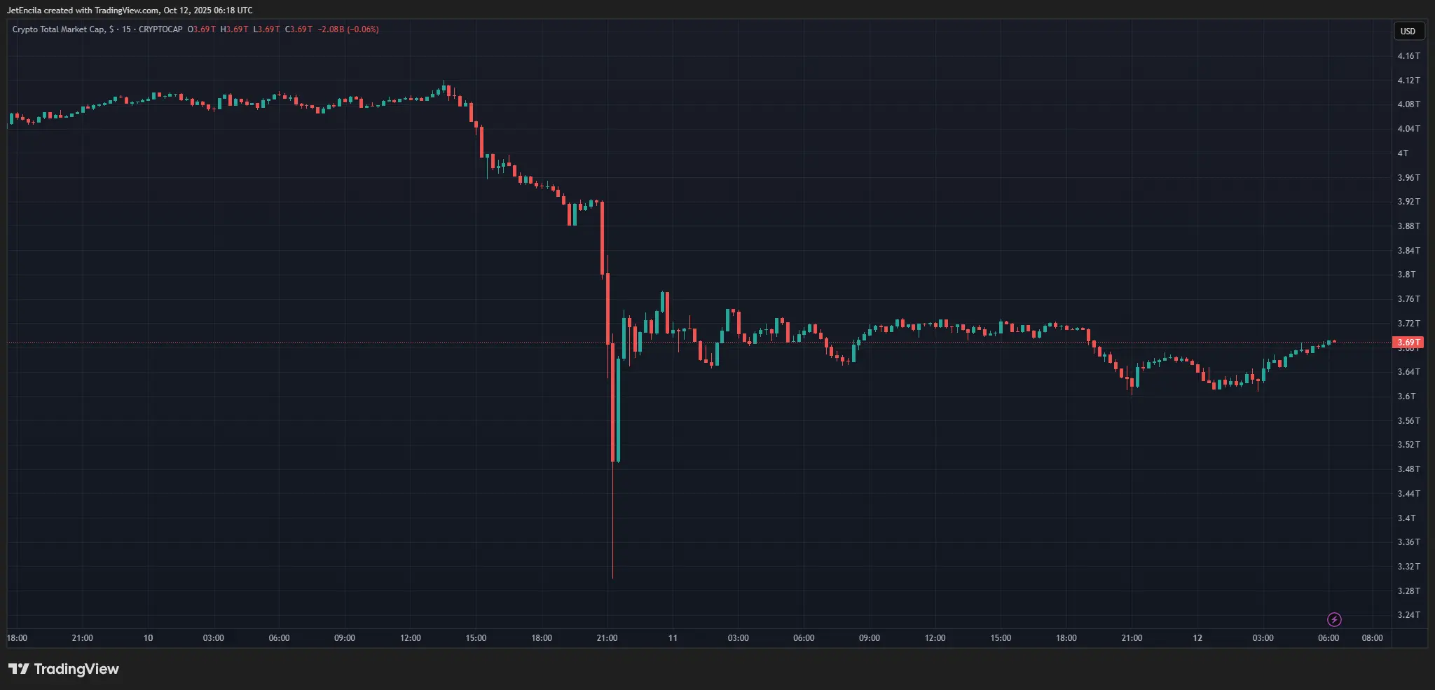 اعتبارًا من اليوم، كانت القيمة السوقية للعملات المشفرة تبلغ 3.69 تريليون دولار. الرسم البياني: TradingView